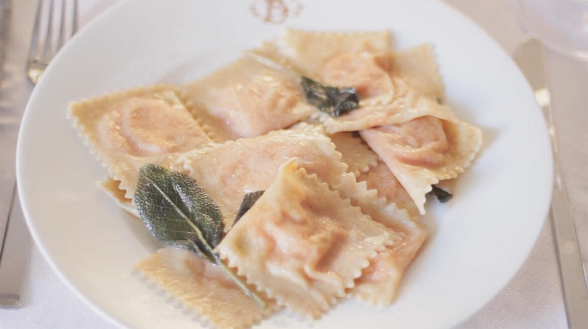 In provincia di Mantova, al confine tra Emilia-Romagna e Lombardia, esiste un piatto antico chiamato “tortelli di zucca”: pasta ripiena di zucca, amaretti e una manciata di Parmigiano Reggiano. Non è un dessert, non è un primo piatto, non è un secondo: è una via di mezzo, servita come piatto principale durante le feste.